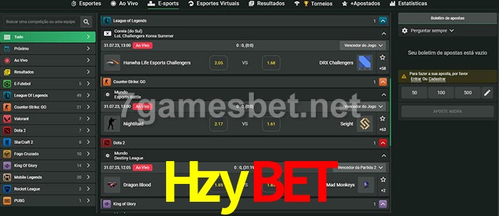 O Hzybet oferece uma grande seleção de opções de apostas em e-sports com probabilidades competitivas
